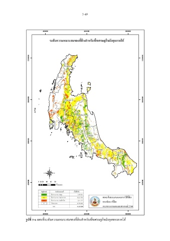 3-49 รูปที่ 3-6 แผนที่ระดับความเหมาะสมของที่ดินส าหรับพืชเศรษฐกิจมังคุดของภาคใต้
