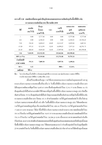 ตารางที่ 3-28 ผลผลิตเฉลี่ยและมูลค่าปัจจุบันของผลตอบแทนการผลิตมังคุดในพื้นที่ที่มีระดับ
