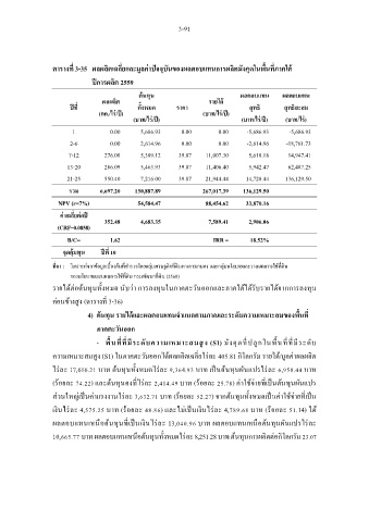 ตารางที่ 3-35 ผลผลิตเฉลี่ยและมูลค่าปัจจุบันของผลตอบแทนการผลิตมังคุดในพื้นที่ภาคใต้