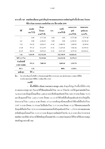 ตารางที่ 3-45 ผลผลิตเฉลี่ยและมูลค่าปัจจุบันของผลตอบแทนการผลิตมังคุดในพื้นที่ภาคตะวันออก