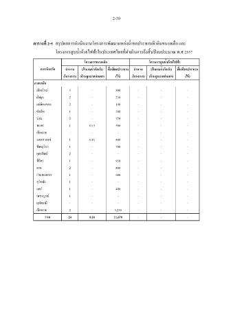 ตารางที่ 2-5 สรุปผลการด าเนินงานโครงการพัฒนาแหล่งน ้าชลประทานผิวดินขนาดเล็ก และ