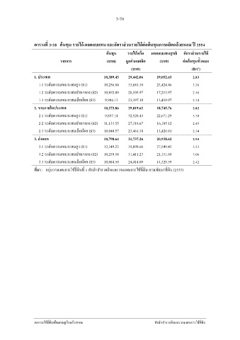 รายการ (บาท) มูลค่าผลผลิต (บาท) ต่อต้นทุนทั้งหมด