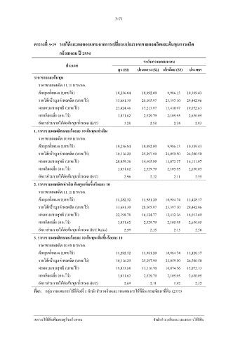 ตารางที่ 3-29 รายได้และผลตอบแทนจากการเปลี่ยนแปลงราคาขายผลผลิตและต้นทุนการผลิต