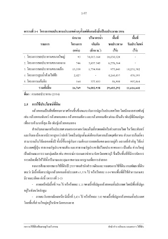 ตารางที่ 2-1 โครงการชลประทานประเภทต่างๆ ตั้งแต่ต้นจนถึงสิ้นปีงบประมาณ 2554