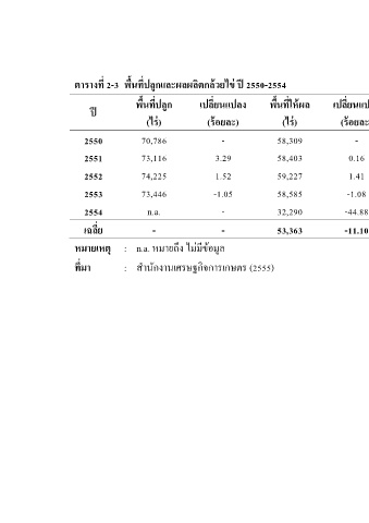 ตารางที่ 2-3 พื้นที่ปลูกและผลผลิตกล้วยไข่ ปี 2550-2554