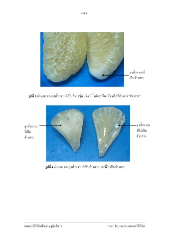รูปที่ 3 ลักษณะของถุงนํ้าหวานที่เป็นสีขาวขุ่น แข็ง มีนํ้าน้อยหรือแห้ง หรือที่เรียกว่า "ข้าวสาร"