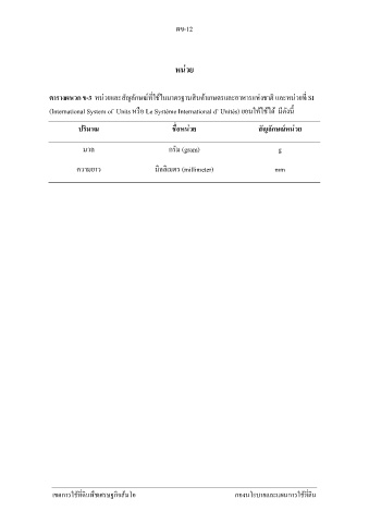 ตารางผนวก ข-3 หน่วยและสัญลักษณ์ที่ใช้ในมาตรฐานสินค้าเกษตรและอาหารแห่งชาติ และหน่วยที่ SI