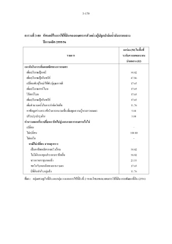 ตารางที่ 3-80 ทัศนคติในการใชที่ดินของเกษตรกรตัวอยางผูปลูกปาลมน้ํามันภาคกลาง