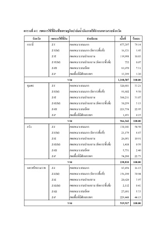 ตารางที่ 4-1 เขตการใชที่ดินพืชเศรษฐกิจปาลมน้ํามันภาคใตจําแนกตามรายจังหวัด