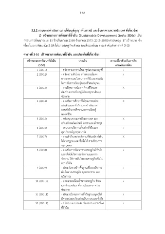 ตารางที่ 3-10 เป้าหมายการพัฒนาที่ยั่งยืน และประเด็นที่เกี่ยวข้อง