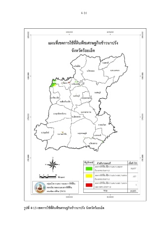 4-16 รูปที่ 4-13 เขตการใช้ที่ดินพืชเศรษฐกิจข้าวนาปรัง จังหวัดร้อยเอ็ด