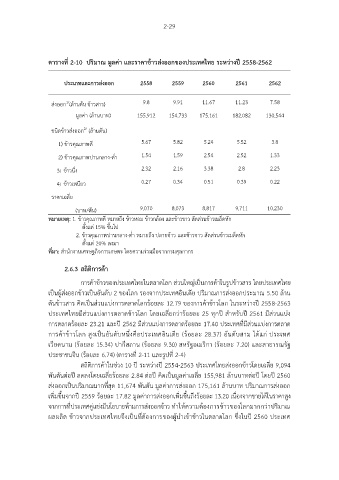ตารางที่ 2-10 ปริมาณ มูลค่า และราคาข้าวส่งออกของประเทศไทย ระหว่างปี 2558-2562