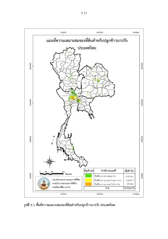 3-13 รูปที่ 3-1 พื้นที่ความเหมาะสมของที่ดินส าหรับปลูกข้าวนาปรัง ประเทศไทย