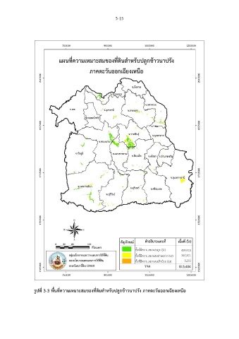 3-15 รูปที่ 3-3 พื้นที่ความเหมาะสมของที่ดินส าหรับปลูกข้าวนาปรัง ภาคตะวันออกเฉียงเหนือ