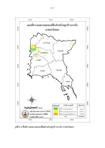 3-17 รูปที่ 3-5 พื้นที่ความเหมาะสมของที่ดินส าหรับปลูกข้าวนาปรัง ภาคตะวันออก