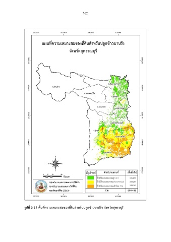 3-26 รูปที่ 3-14 พื้นที่ความเหมาะสมของที่ดินส าหรับปลูกข้าวนาปรัง จังหวัดสุพรรบุรี