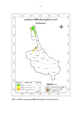 3-31 รูปที่ 3-19 พื้นที่ความเหมาะสมของที่ดินส าหรับปลูกข้าวนาปรัง จังหวัดสงขลา