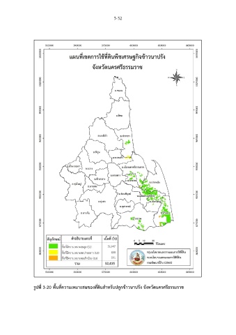 3-32 รูปที่ 3-20 พื้นที่ความเหมาะสมของที่ดินส าหรับปลูกข้าวนาปรัง จังหวัดนครศรีธรรมราช