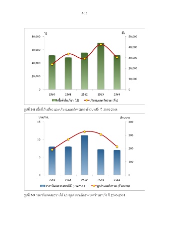 รูปที่ 3-9 ราคาที่เกษตรกรขายได และมูลคาผลผลิตรวมของขาวนาปรัง ป 2560-2564