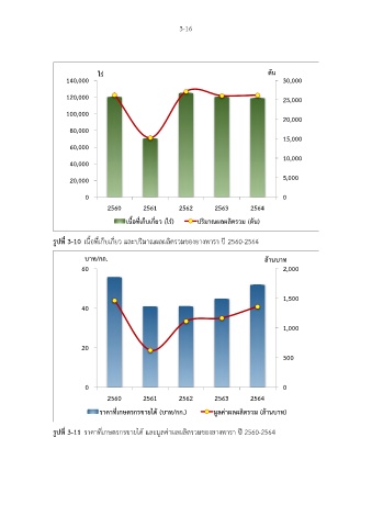รูปที่ 3-10 เนื้อที่เก็บเกี่ยว และปริมาณผลผลิตรวมของยางพารา ป 2560-2564
