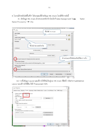 8.2 วางชั้นข้อมูล Layout แผนที่การใช้ที่ดินให้อยู่บน Hill shade ที่ตัดไว้ ปรับค่าการแสดงผลของ