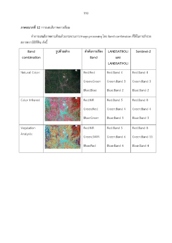 ท าการผสมสีภาพดาวเทียมด้วยกระบวนการ Image processing โดย Band combination ที่ใช้ในการส ารวจ