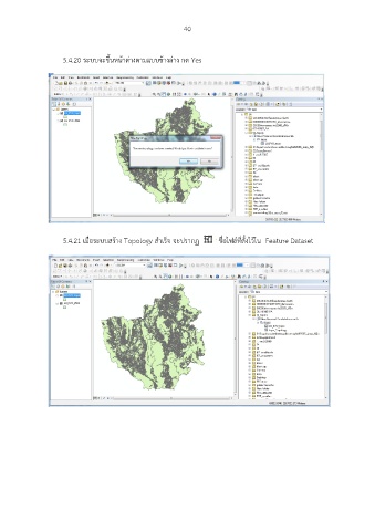 40 5.4.20 ระบบจะขึ้นหน้าต่างตามแบบข้างล่าง กด Yes 5.4.21 เมื่อระบบสร้าง Topology ส าเร็จ จะปรากฏ ชื่อไฟล์ที่ตั้งไว้ใน Feature Dataset
