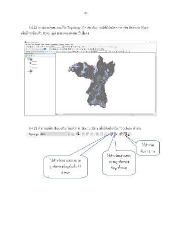 5.4.22 การตรวจสอบและแกไข Topology เปิด ArcMap กรณีที่มีข้อผิดพลาด เช่น มีช่องว่าง (Gap)