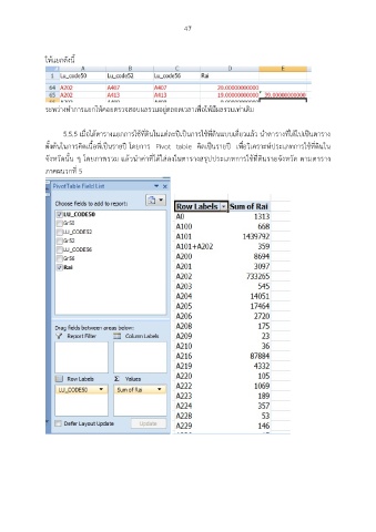 ตั้งต้นในการคิดเนื้อที่เป็นรายปี โดยการ Pivot table คิดเป็นรายปี เพอวิเคราะห์ประเภทการใช้ที่ดินใน