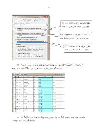 5.7.5 คิดเนื้อที่ โดยการเพิ่ม Field ชื่อว่า Area_Meter ค านวณเนื้อที่เป็นตารางเมตร และ Field ชื่อ