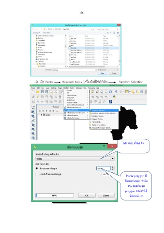 56 5) เปิด Vector Research tools (เครื่องมือที่ใช้ท าวิจัย) Random Selection ไฟล์ Grid ที่ได้ท ำไว้ จ ำนวน polygon ที่ ต้องตรวจสอบ เท่ำกับ 1% ของจ ำนวน polygon ของกำรใช้ ที่ดินระดับ 2