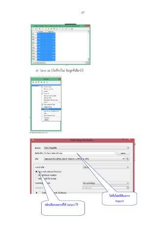 57 6) Save as (บันทึกเป็น) ข้อมูลที่เลือกไว้ ใส่ชื่อไฟล์ที่ต้องกำร คลิกเลือกเฉพำะที่ได้ Select ไว้ Export