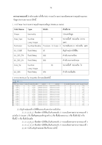 2. ตาราง Attribute ใน Shapefile มีรายละเอียดดังนี้